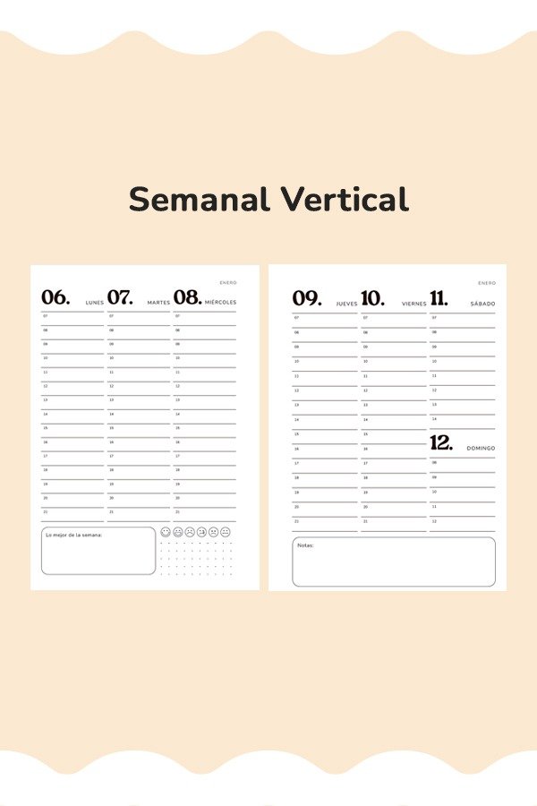 ★ Diagramación de los dias: semana a la vista en forma vertical / horizontal o día por página (elegí la que mejor se adapte a vos)